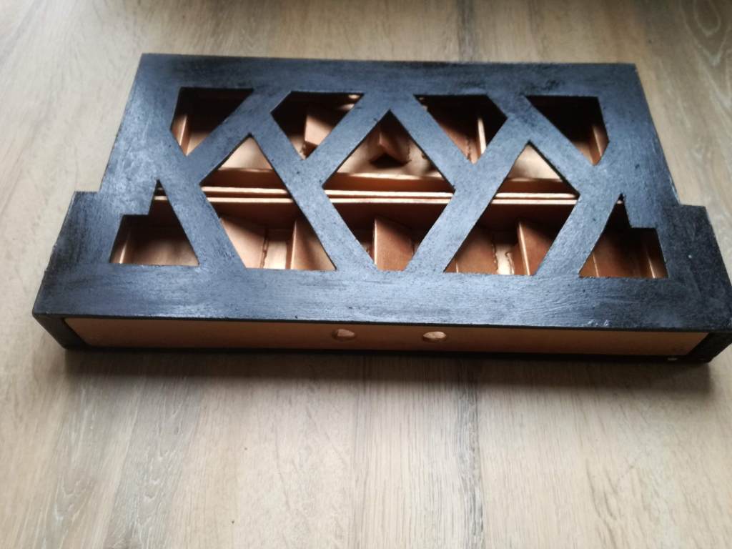 Na twee mooie kisten te hebben gemaakt kan ik wel patent gaan aanvragen op het maken van deze kisten. Dus mocht je toevallig ook fan zijn van Dominion of een andere leuk deck building game?! En je wilt er een gave opbergmogelijkheid voor willen hebben, laat het maar weten in een reactie!