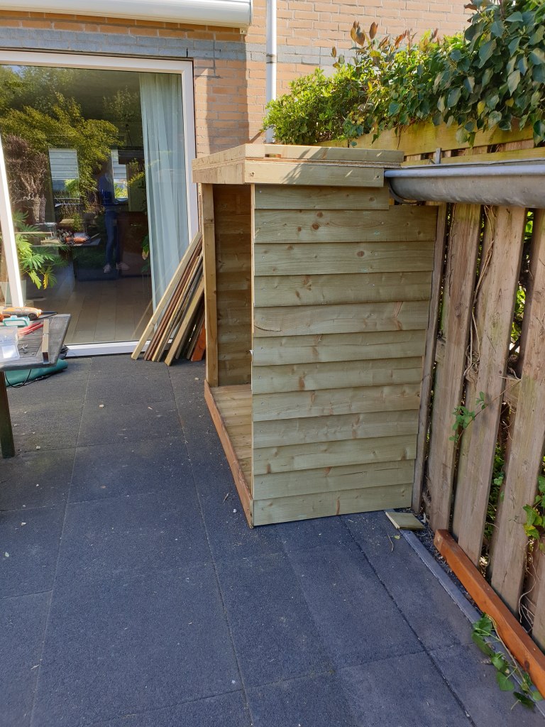 Door de regering kregen we een opgelegde quarantaine voor de gezondheid van de bevolking. In deze periode had ik tijdelijk meer vrije tijd over om een aantal klusjes op te pakken rondom het huis. Voor de tuinkussens is er een hok gemaakt, waar deze opgeborgen konden worden. Daarnaast stond er al een tijdje een containerombouw op het lijstje.