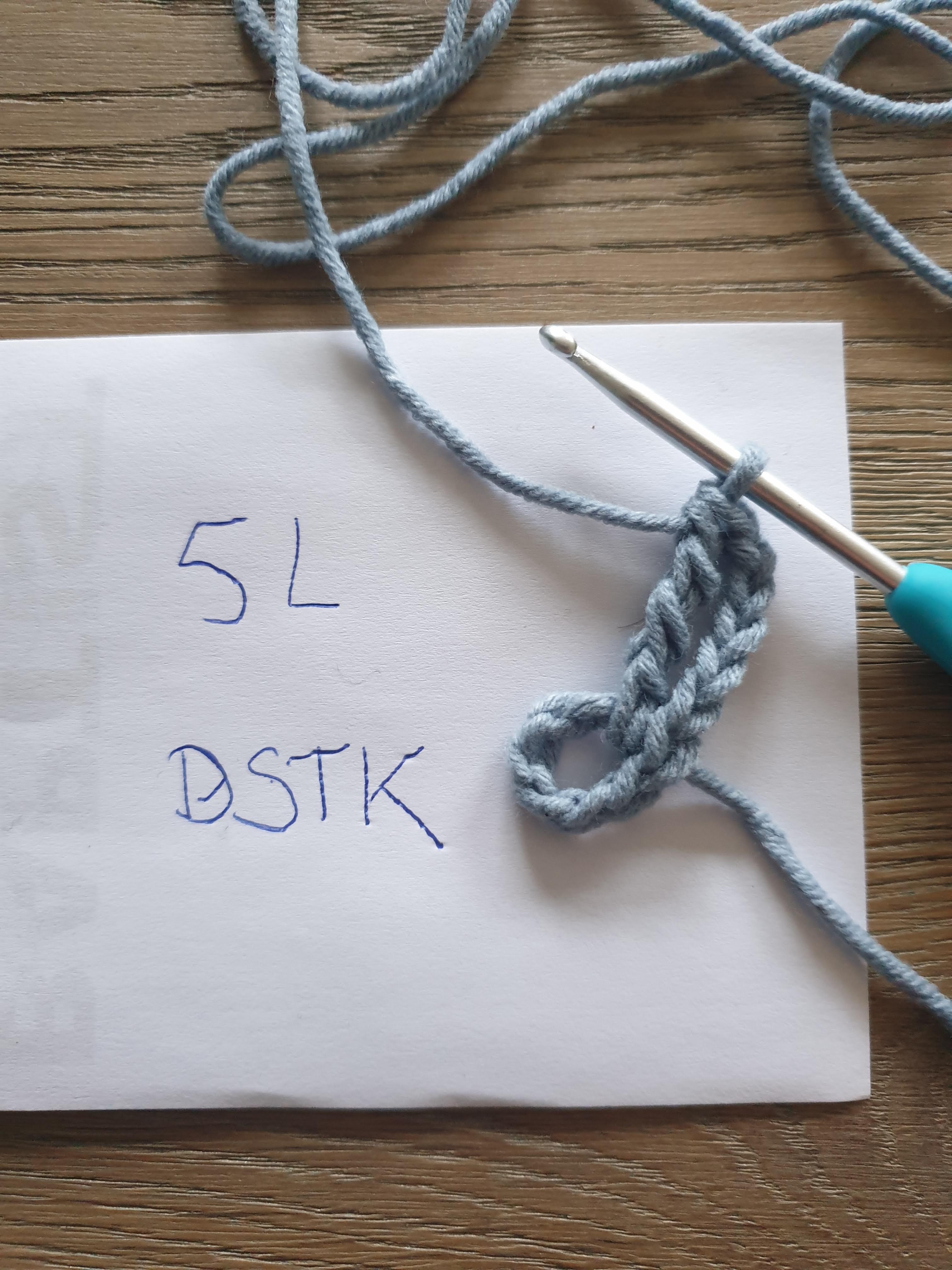 - Je haakt dan weer vijf lossen (vervanging van een dubbelstokje).