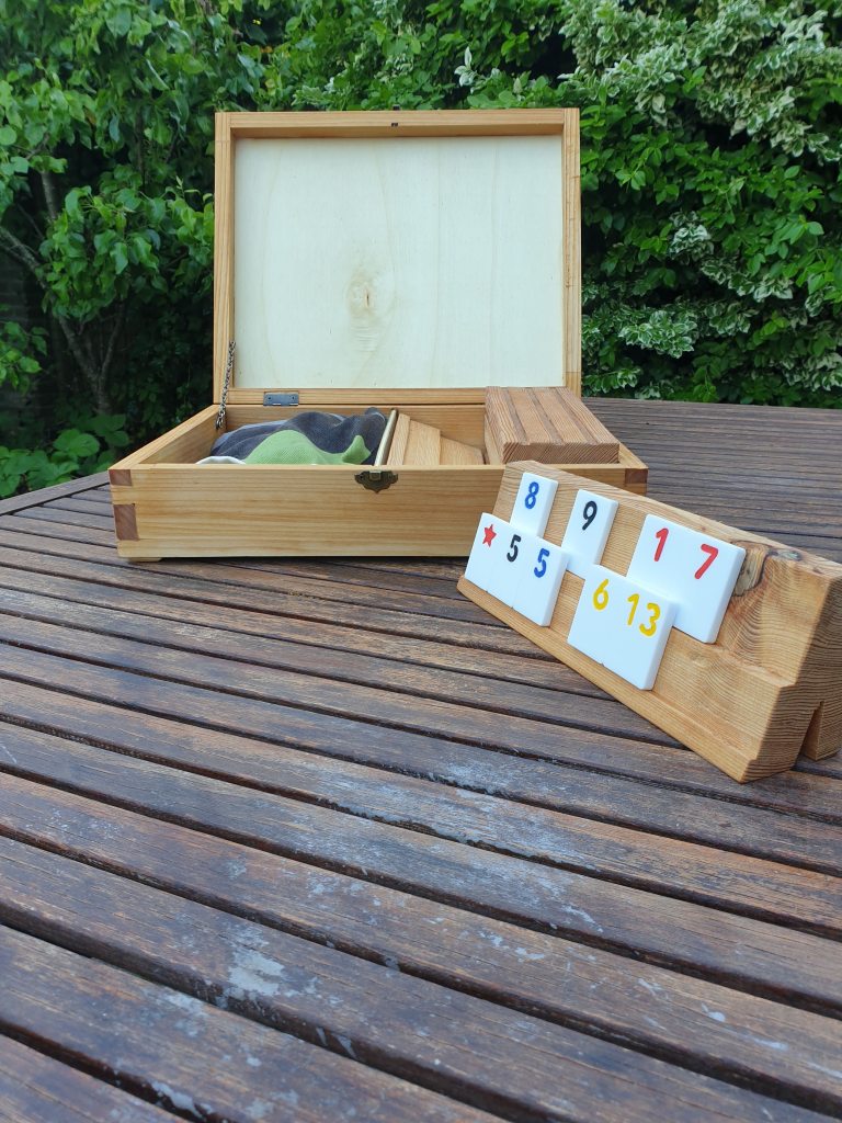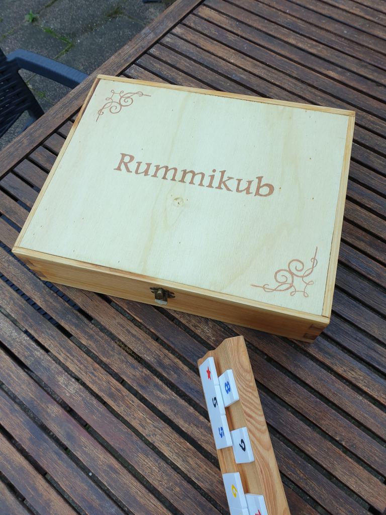 Voor een aantal spellen zijn nu de kartonnen dozen dus ingeruild voor handgemaakte kisten, of zijn spelonderdelen geüpgraded tot houten onderdelen. Voor het Rummikub spel hebben we alles zelf gemaakt, maar wat ons nog ooit leuk lijkt, is om helemaal zelf een spel te maken van de regels, van de spelonderdelen tot de opbergdoos. Dit vraagt wel om nog wat meer vaardigheden, dan alleen houtbewerking. Maar je weet het nooit, tot nu toe is er ieder geval wel al een zelfbedacht digitaal spel Atmosphere. Deze is hier te gratis te downloaden en wie weet gaan we hier nog wel eens een analoog spel van maken.
