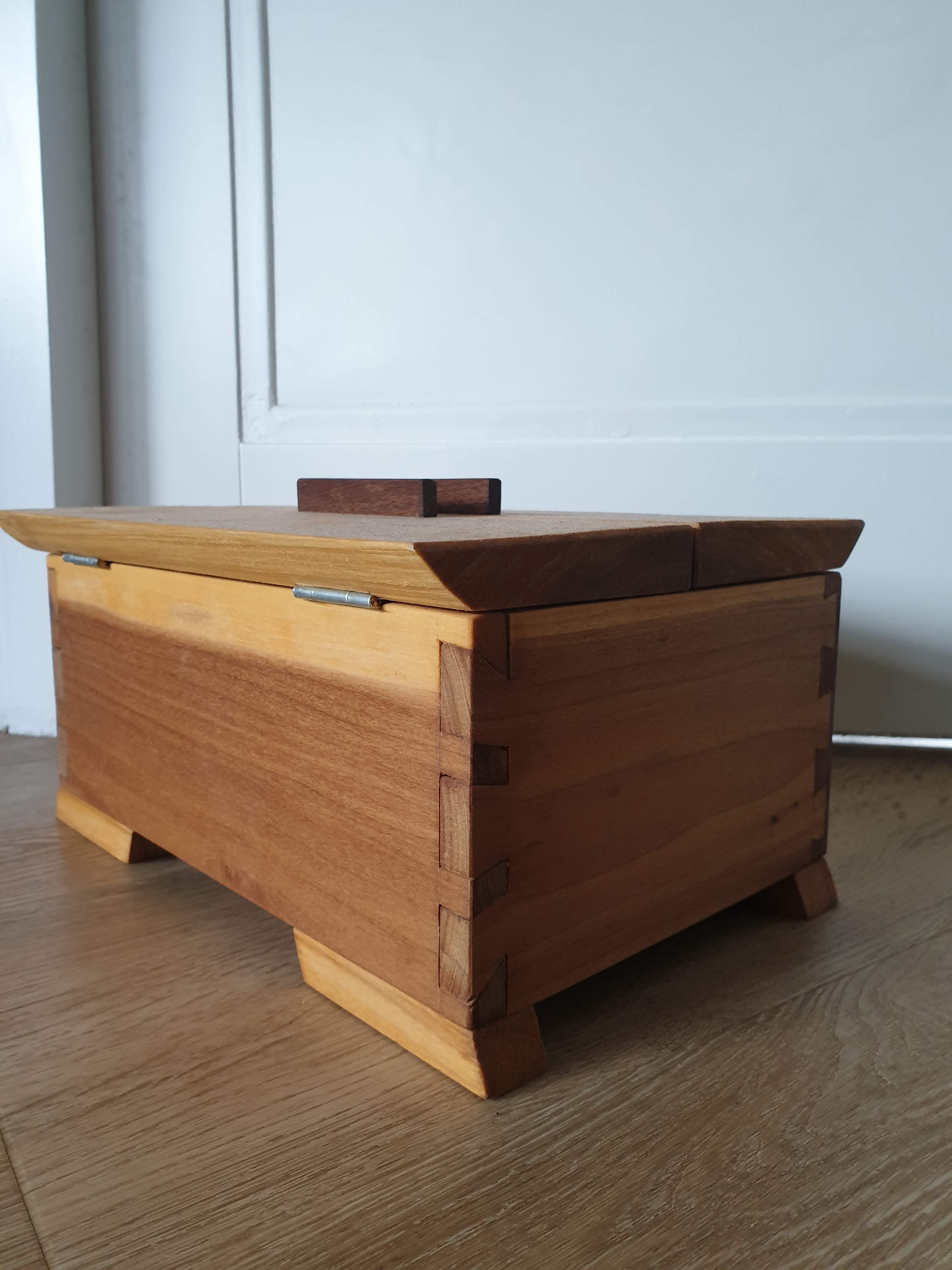 Kersenhouten koffer met zwaluwstaarten.