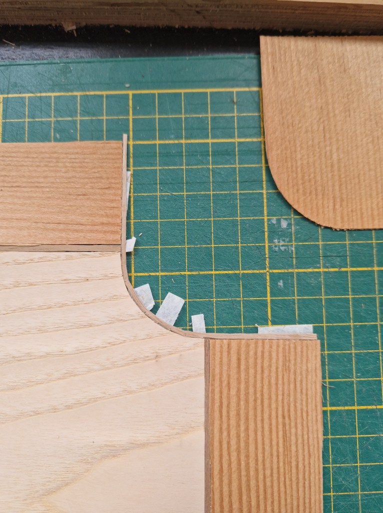 Nu de rechte plank een vierkante doos was geworden werd het tijd om er een mooi gefineerde deksel voor te gaan maken.