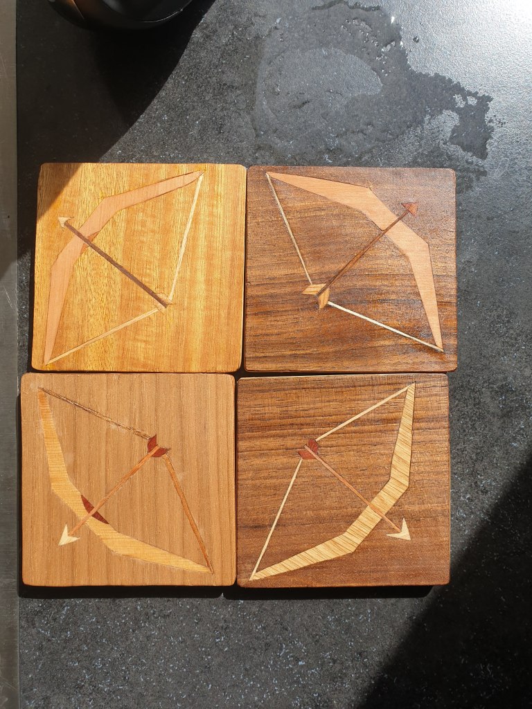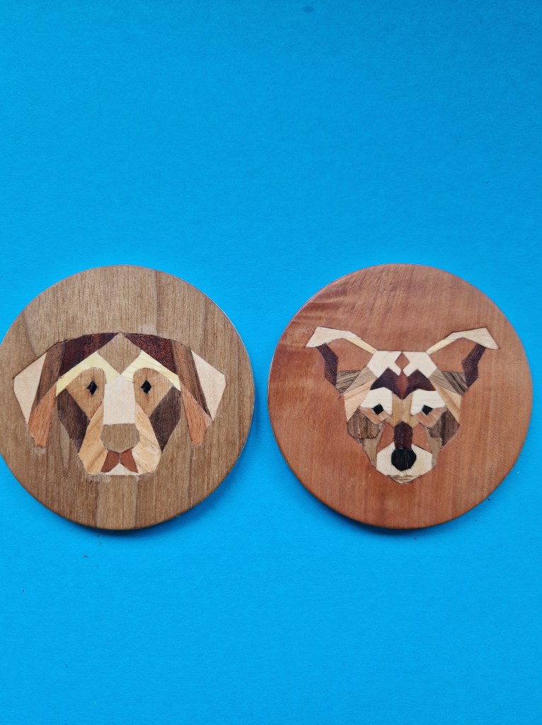 Sinds ik nu aan het fineren ben geraakt heb ik inmiddels een heleboel persoonlijke onderzetters gemaakt. Deze kunnen aangevraagd worden, maar ook heb ik ze vaak zelf als een kadootje gegeven. Het kan heel uiteenlopend zijn, van je eigen kat of hond op een onderzetter tot een bedrijfslogo. Hieronder een klein impressie van wat ik heb gemaakt de afgelopen jaren.