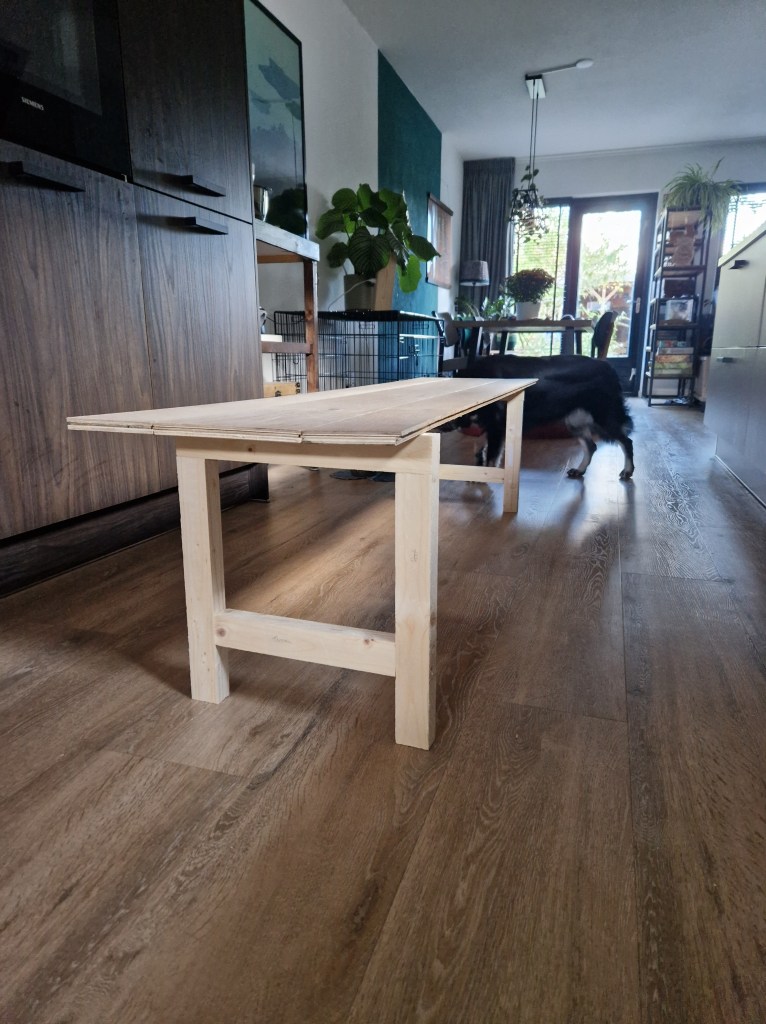 Wij hebben sinds een aantal jaar een leuke viervoeter aan ons huishouden toegevoegd. Dit zorgde echter ervoor dat er een iets te grote hondenbench in de woonkamer kwam te staan, met als gevolg enig ruimtegebrek in de woonkamer. De oplossing zou zijn om een eetkamerbank te hebben, zodat de eettafel een kwartslag gedraaid kan worden, en iets meer tegen de muur gezet kon worden. En zoals het hier nu tegenwoordig gaat, als we een nieuw meubelstuk nodig hebben, dan maken we het gewoon lekker zelf!