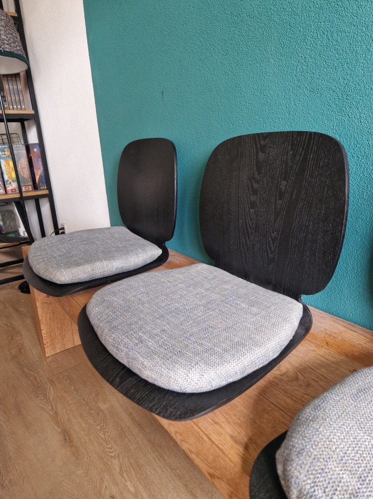 Nu moesten alleen nog de zittingen erop gemonteerd worden, bij de zittingen zelf zat bevestigingsmateriaal en deze konden we gelukkig gewoon gebruiken. Dus vier gaten boren, stoeltjes erop zetten en vastschroeven maar!